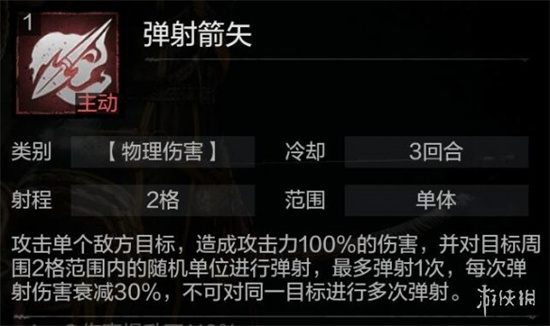 弹射箭矢是一个标准的单体伤害技能,并附加了额外的弹射效果。该技能配合月之护佑技能开启后的状态,在夜晚能够最大化唤月者的输出,且能够对单体敌军造成伤害外,还可对目标周围2格范围内的敌军进行弹射伤害。