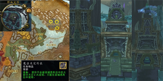 到天灾城脱战时再穿,画面会像笼罩在迷雾里,躲开胖子,找三个塔进去中间就提示完成了,有一个是要从外面去二楼站中间,好像是三个点中间那个,如果被胖子发现需要打死脱战重新脱掉披风穿下