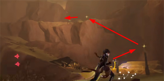 1、首先我们需要来到赤王陵的下图位置,箭头所指的地方就是本次要解锁的地下锚点了